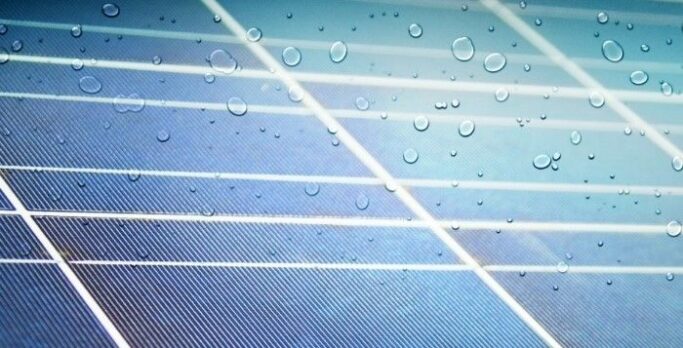 Painéis solares fotovoltaicos que geram energia com a chuva
